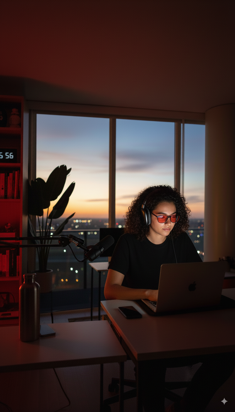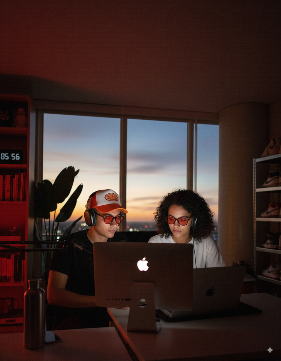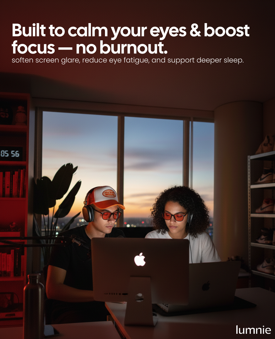 LUM•Red is purpose-built for late screens: calibrated red lenses, optical-grade clarity, and all-night comfort—without gimmicks.